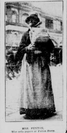 As soon as a boy has bought, fought or found his way into the procession, his associates size him up, study his traits and peculiarities, and if he has the elements of popularity he soon receives a nickname. Even the women, who play no small part in newsboys’ circles, have their nicknames, and Mrs. Shea, whose portly form takes up valuable space in Park Row, near the Bridge, is often addressed by a name which is powerful in financial circles, because she is said to be “awful rich”; Mrs. Cochran is addressed as “Aunty,” Mrs. Myers is “Beauty,” and old Hannah Kleff is meant when they boys call “Fight.” “But Hannah’s all right, and so is Annie Kelly,” said a striking newsboy. “Dey is union men for fair, but some of de udders has got money to burn, the are scabs just de same.”