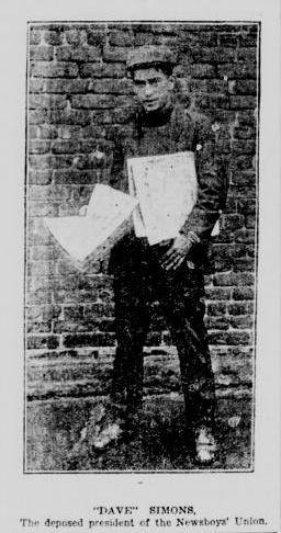 One of the best types of the New-York newsboy is “Dave” Simons, the ex-president of the union. He was born in Ludlow-st. twenty-one years ago, and according to his own statement, has sold papers since he was eight years old. “But I graduated from the Norfolk-st. school,” he said, “just as well as the other boys.” For twelve years he has had his station in City Hall Park, where he now employs several boys to help him. After business hours he puts on the gloves with young men who have aspirations for prize ring honors, and has appeared on several occasions at the various athletic clubs and demonstrated that he could use his fists. When asked what he would do if someone attempted to sell papers on his territory he said: “If de man kin lick me, he kin have de place, and dat’s de case all over. De newsboy has got to look out for himself, and if he’s no good he’d better quit soon.”
